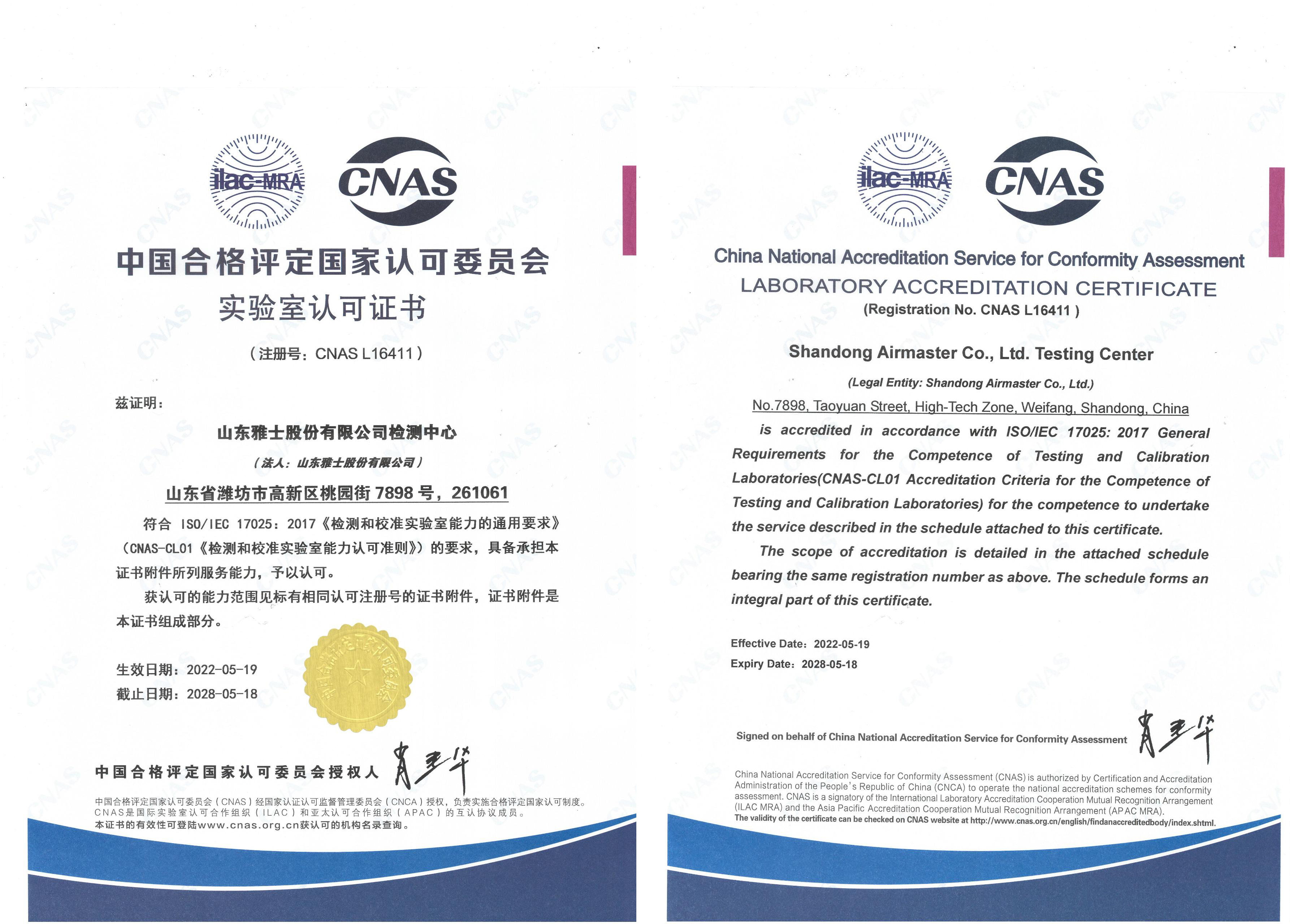 獲得國家認可實驗室認證,標志著雅士空調檢測中心檢測能力邁上了新臺階。后續,雅士將以CNAS實驗室為新的立足點,進一步提升檢測中心的檢測能力和管理水平,為客戶提供優質服務和產品。