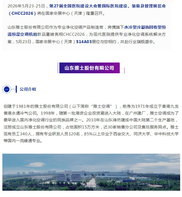 雅士空調攜新品重磅入駐CHCC2026,定義空氣凈化新高度