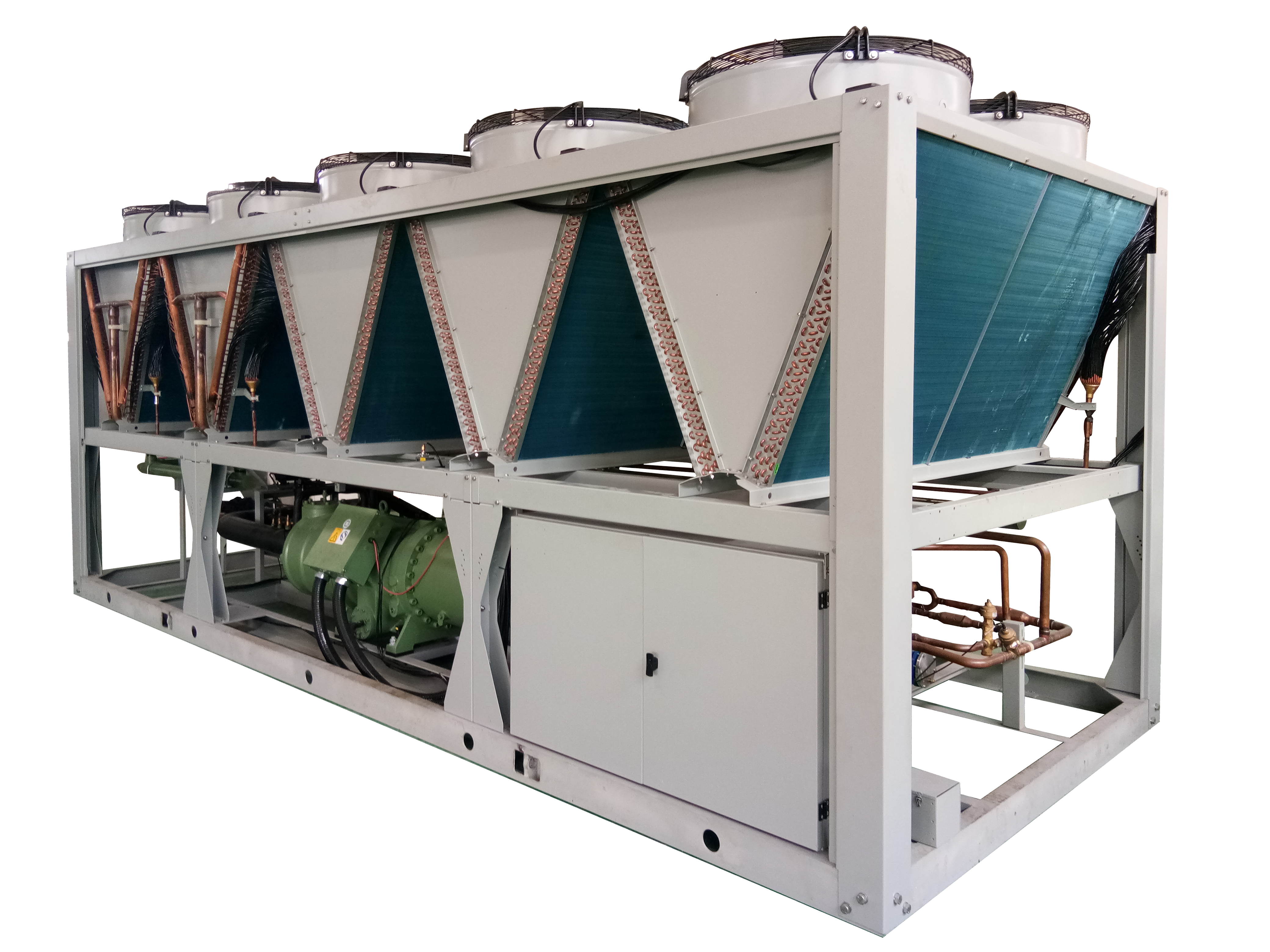 該機(jī)組以空氣為冷熱源,沂水為載冷(熱)機(jī)制,集制冷、供熱于一體,無需冷卻塔、冷卻水泵等輔助設(shè)施。