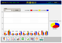 用電量統計界面 計算機按周期對設備實時數據進行記錄,并存儲于上位機的數據庫內,用戶可通過用量統計功能,調取某個時段內各個設備的用量(包括:電量、流量、壓縮空氣使用量),形成柱狀圖、餅圖的方式呈現出來,為以后的運行管理提供參考。 |
